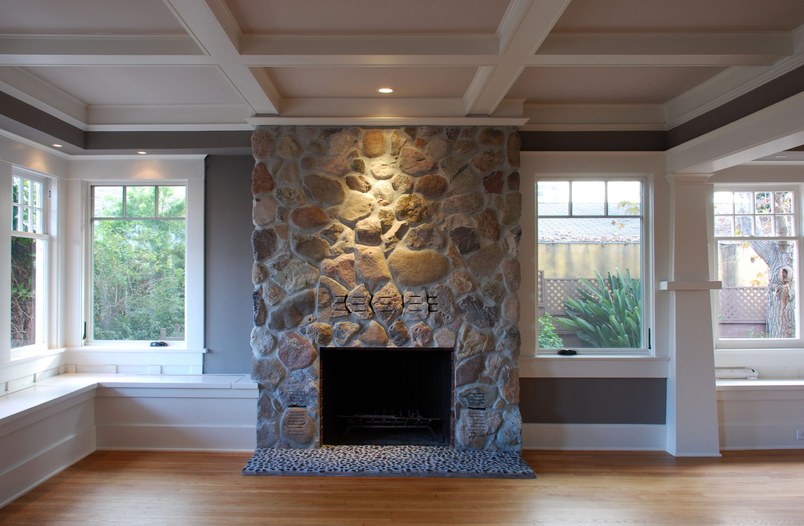 Named from its original date of construction, the remodel of this San Diego Craftsman increases functionality and enjoyment of the house, yet preserves the essence of the original structure. A modest expansion was added at the kitchen along with a new back porch. The interior was selectively gutted – converting individual rooms to an open plan that allows fluidity from one space to the next. Original wood floors and coffered ceilings were maintained and restored. New materials include a troweled concrete floor finish, custom milled soapstone countertop alongside integral sinks, exposed wood and custom casework. New windows and doors were designed to complement the originals. The front porch was overhauled as well. Original hardware, interior doors and other small pieces of the original house were restored, reused and repurposed throughout.