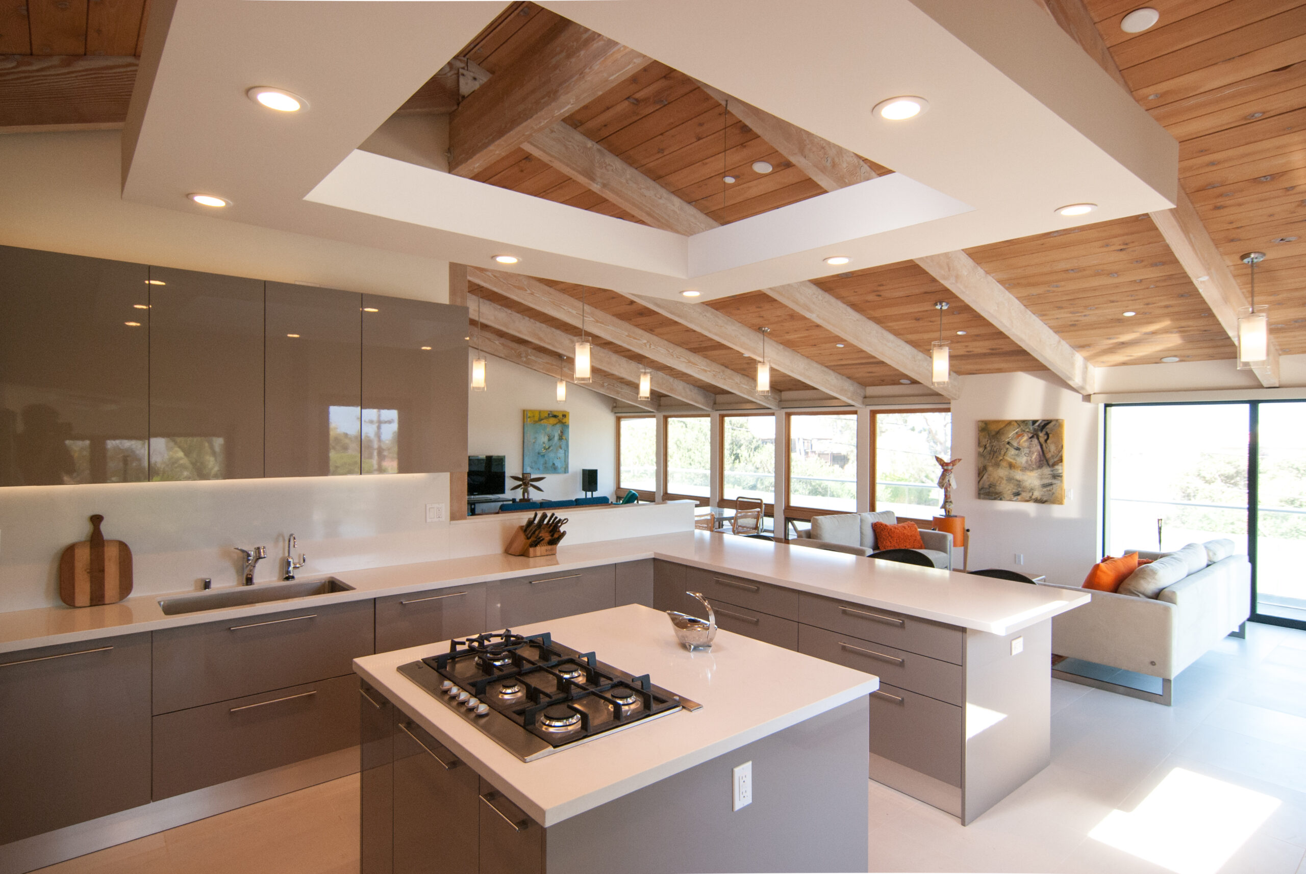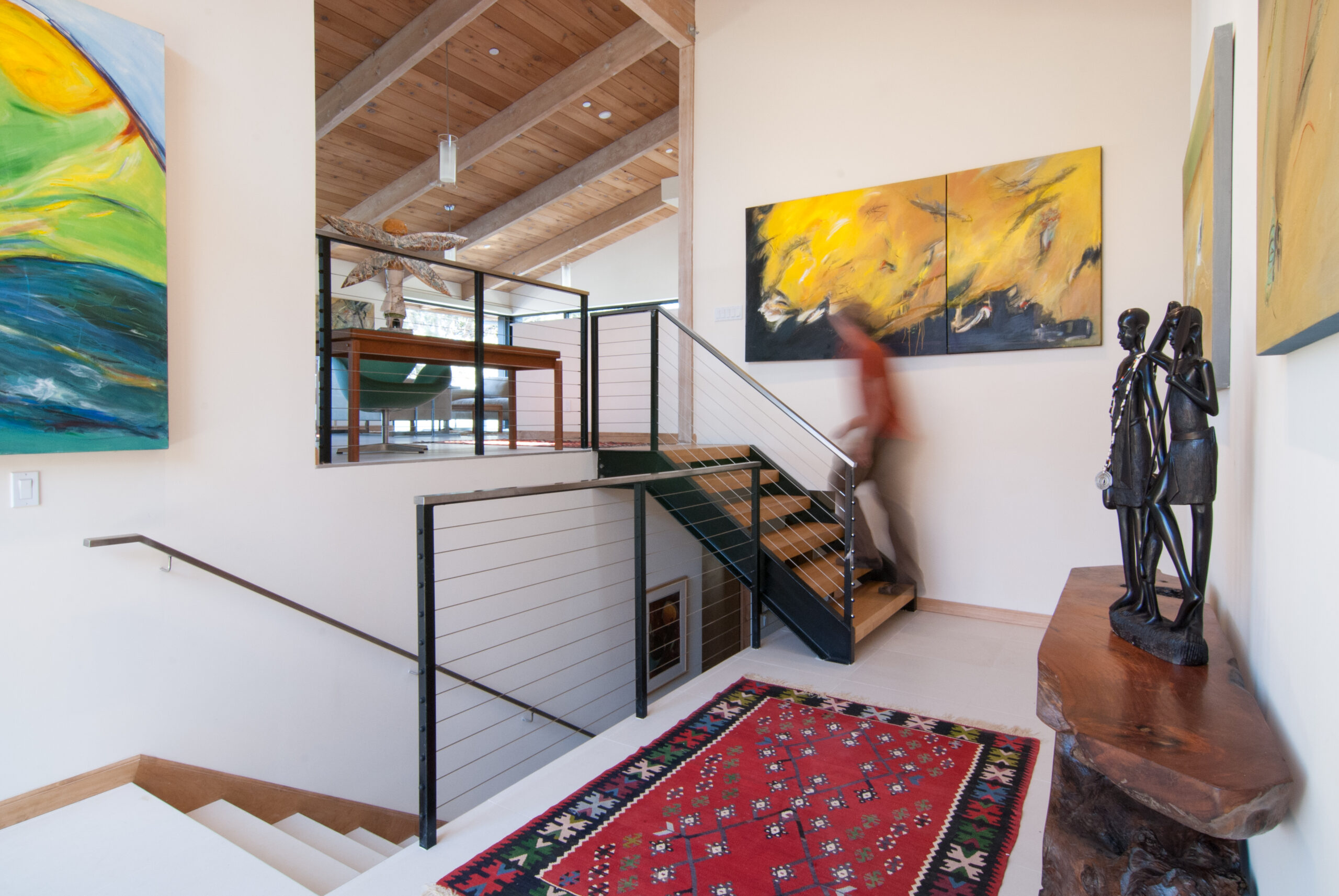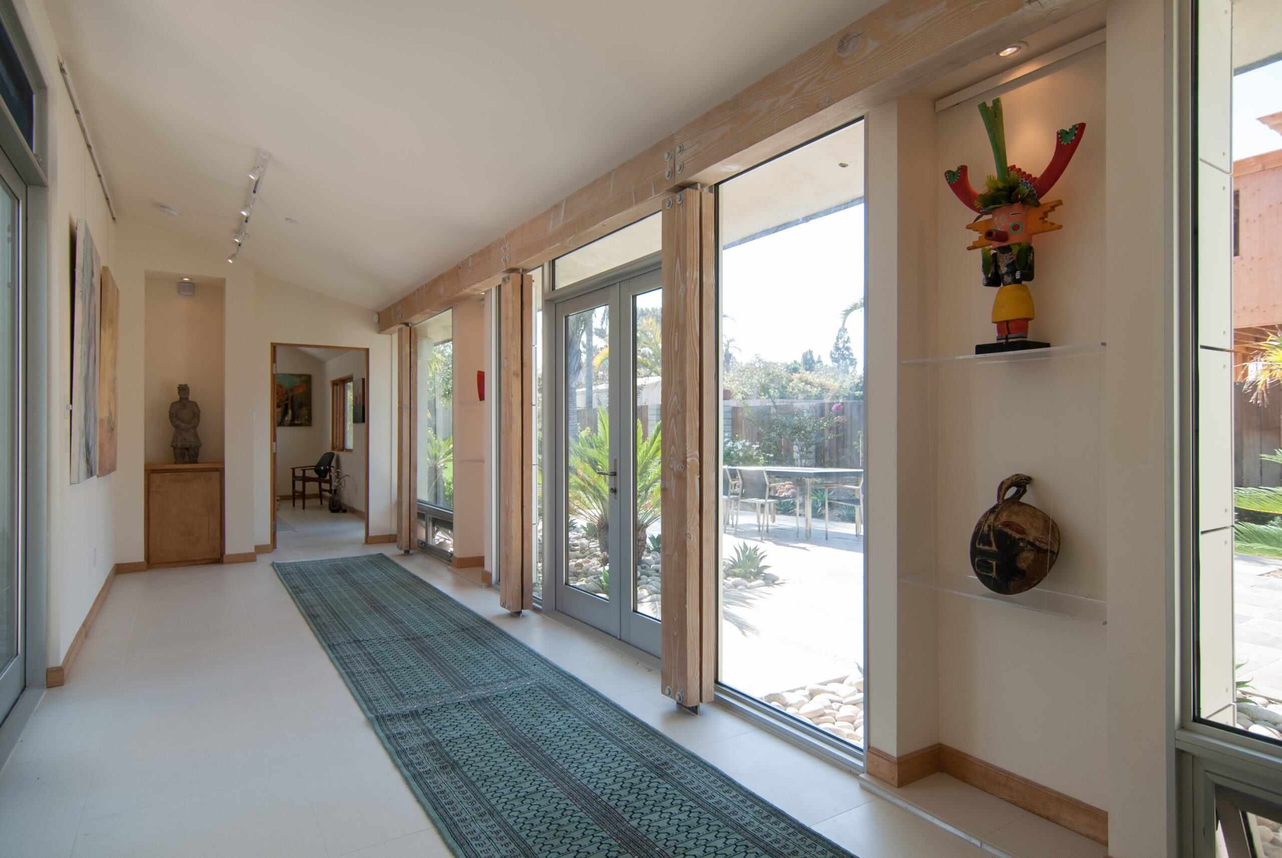 This project got its start when a proud homeowner built his residence a number of decades back on a beautiful site in Solana Beach. The new design proposed a complete reconfiguration of the interior layout and a new gallery walkway. These changes would tie together the existing house and detached garage.  Simple and well executed framing made this work relatively simple, keeping the existing exterior walls and roof in place. New interior and exterior finishes were applied throughout the house. In addition to reusing most of the existing structure, sustainable features include abundant natural light and ventilation, radiant heating, solar hot water and a PV system.