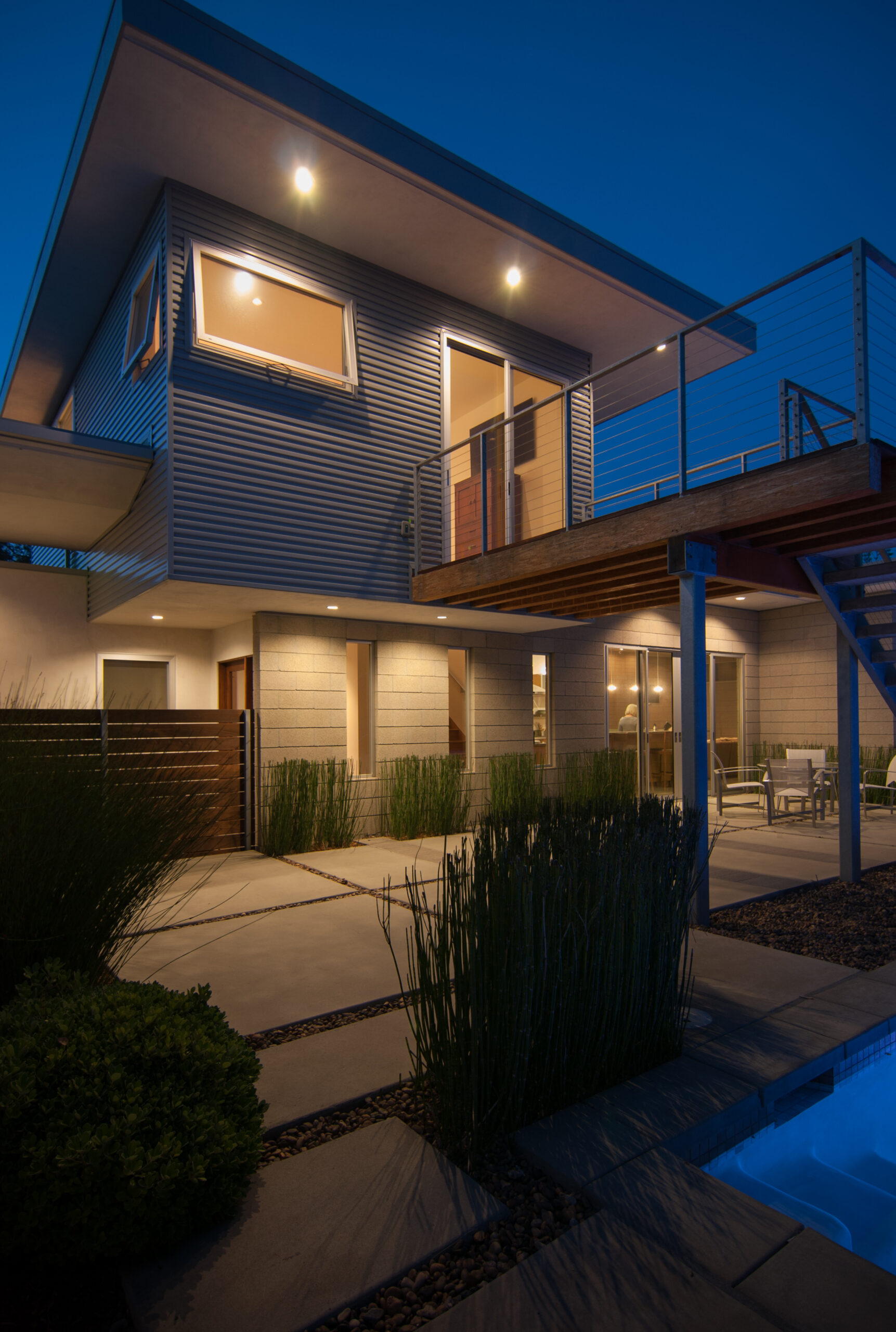 The desire for a modern, energy efficient home on a modest budget necessitated a tight plan with simple, durable materials. The uncomplicated program consisted of an open plan living space, master suite and home office, all with ample connection to the outdoors. Straightforward construction techniques yielded light-filled volumes that took advantage of passive heating and natural ventilation. Coming in at a modest 1,700 square feet of living space with a 200 square foot detached garage, this dwelling delivers all the comforts of a large home-in a compact package.