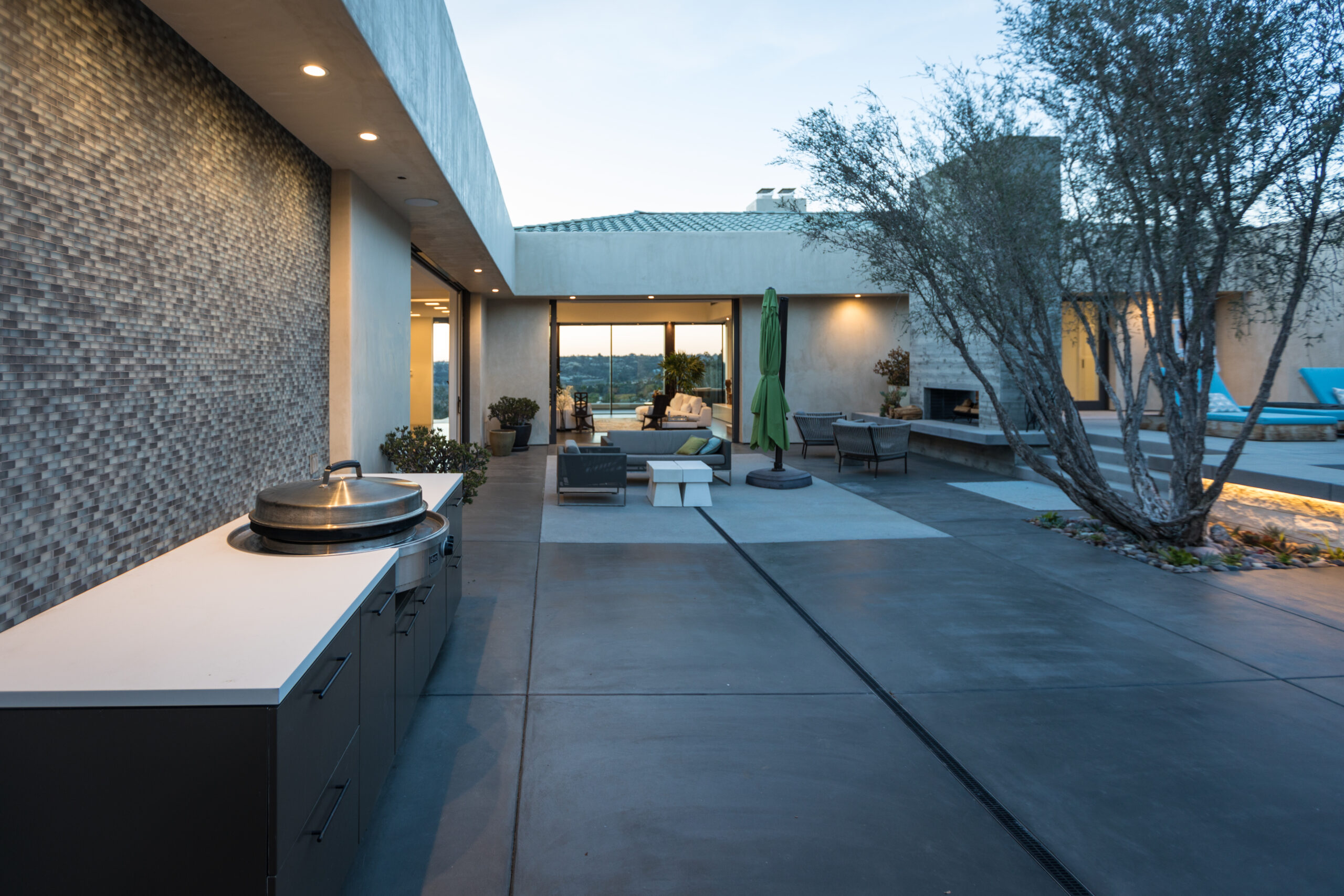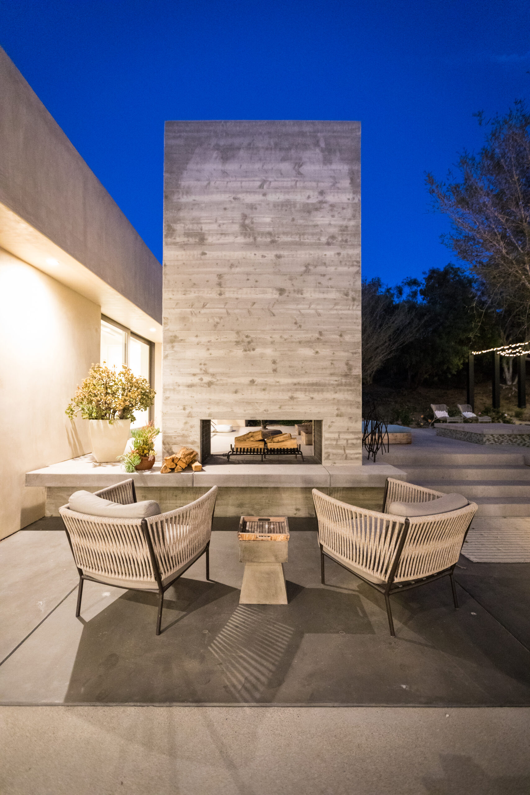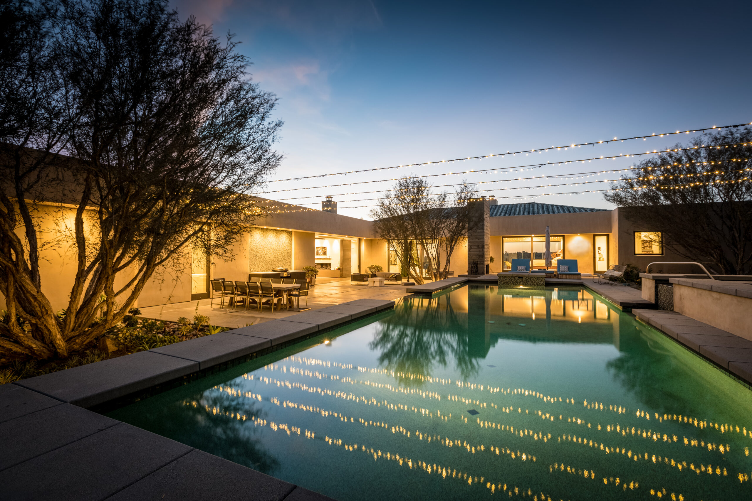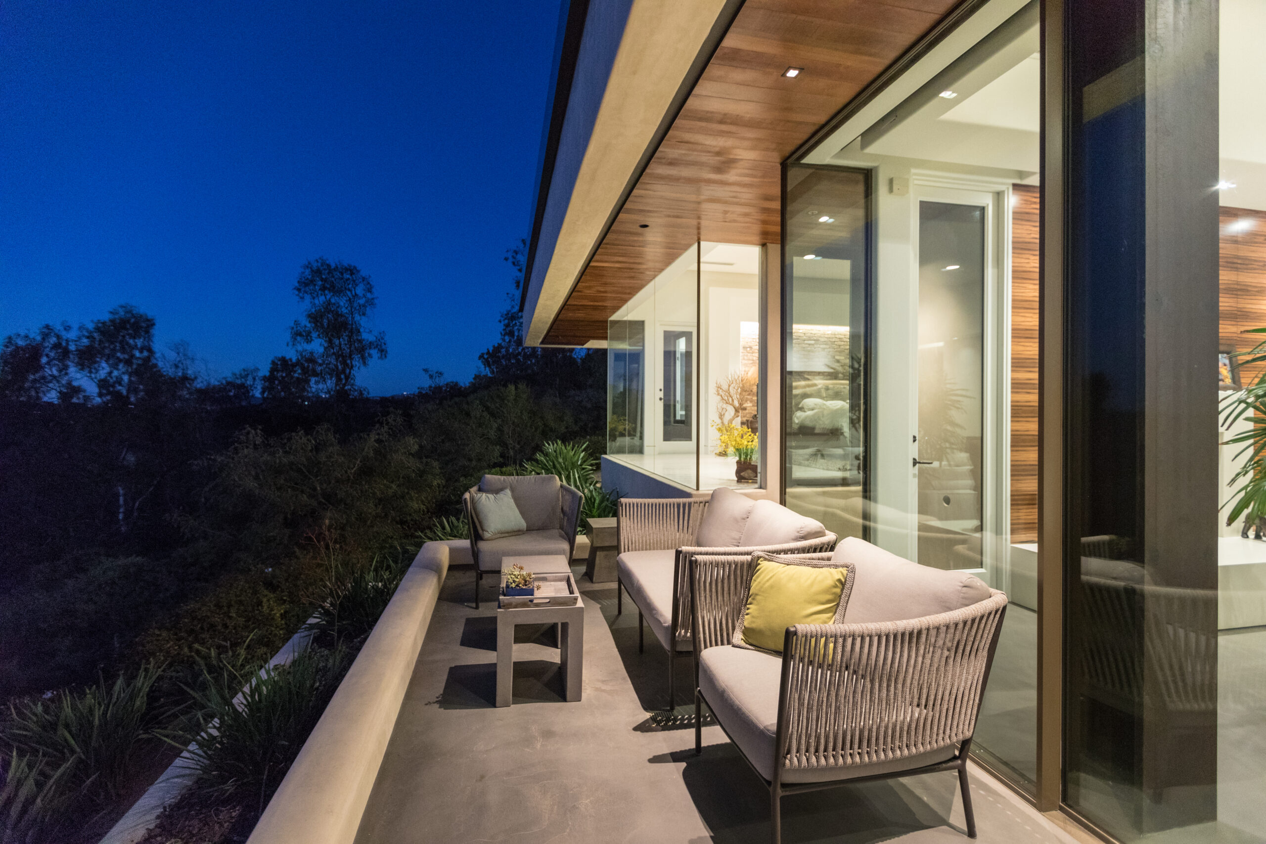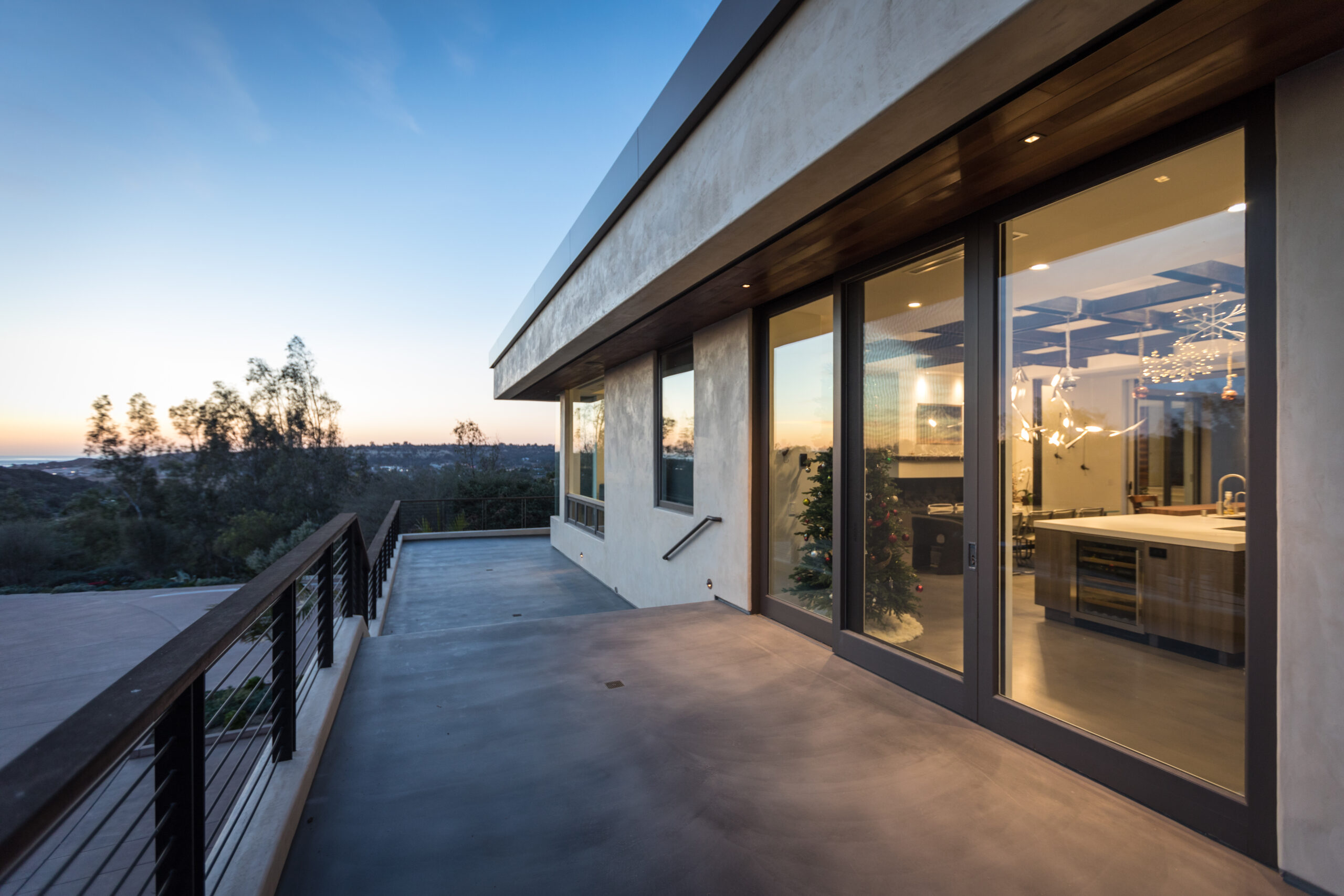 Major face lift of this one-of-a-kind custom home.  Originally built in 1997, the overall structure of the home allowed for design features that would not otherwise be approved under strict Rancho Santa Fe design guidelines.  Exterior materials include stucco and glass walls, a new aluminum fascia and wood T&G soffits.  The new railings are defined by horizontal steel rods and a wood cap.  The rear courtyard was also renovated with a completely refinished pool, new hardscape and a custom cast-in-place concrete fireplace.